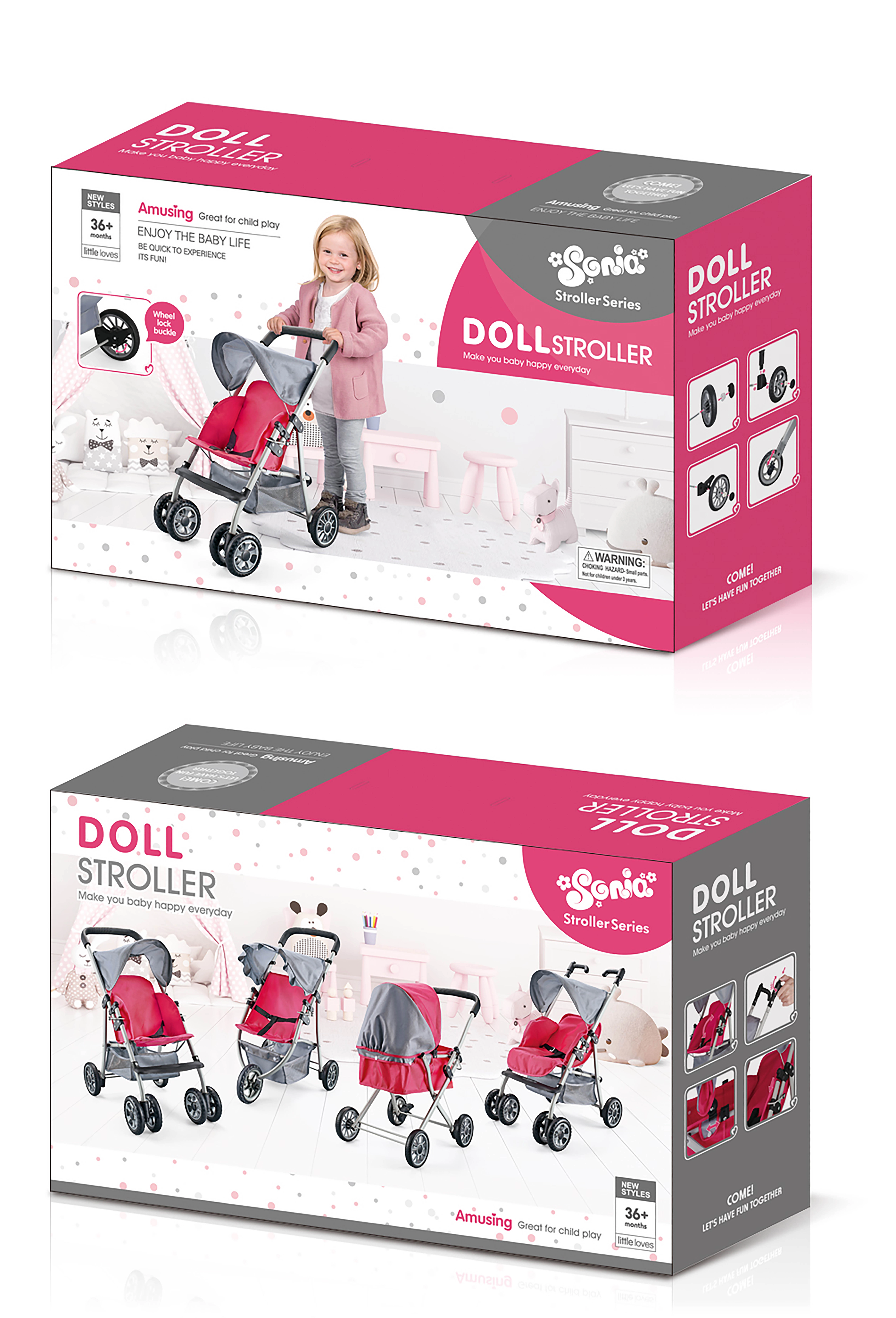 Športni voziček za punčke z dimenzijami 65 × 55 × 34,5 cm je idealna izbira za vsakodnevno igro doma in na prostem. Zahvaljujoč lahki in trpežni konstrukciji se ga otroci zlahka naučijo upravljati ter razvijajo svojo domišljijo in motorične spretnosti.