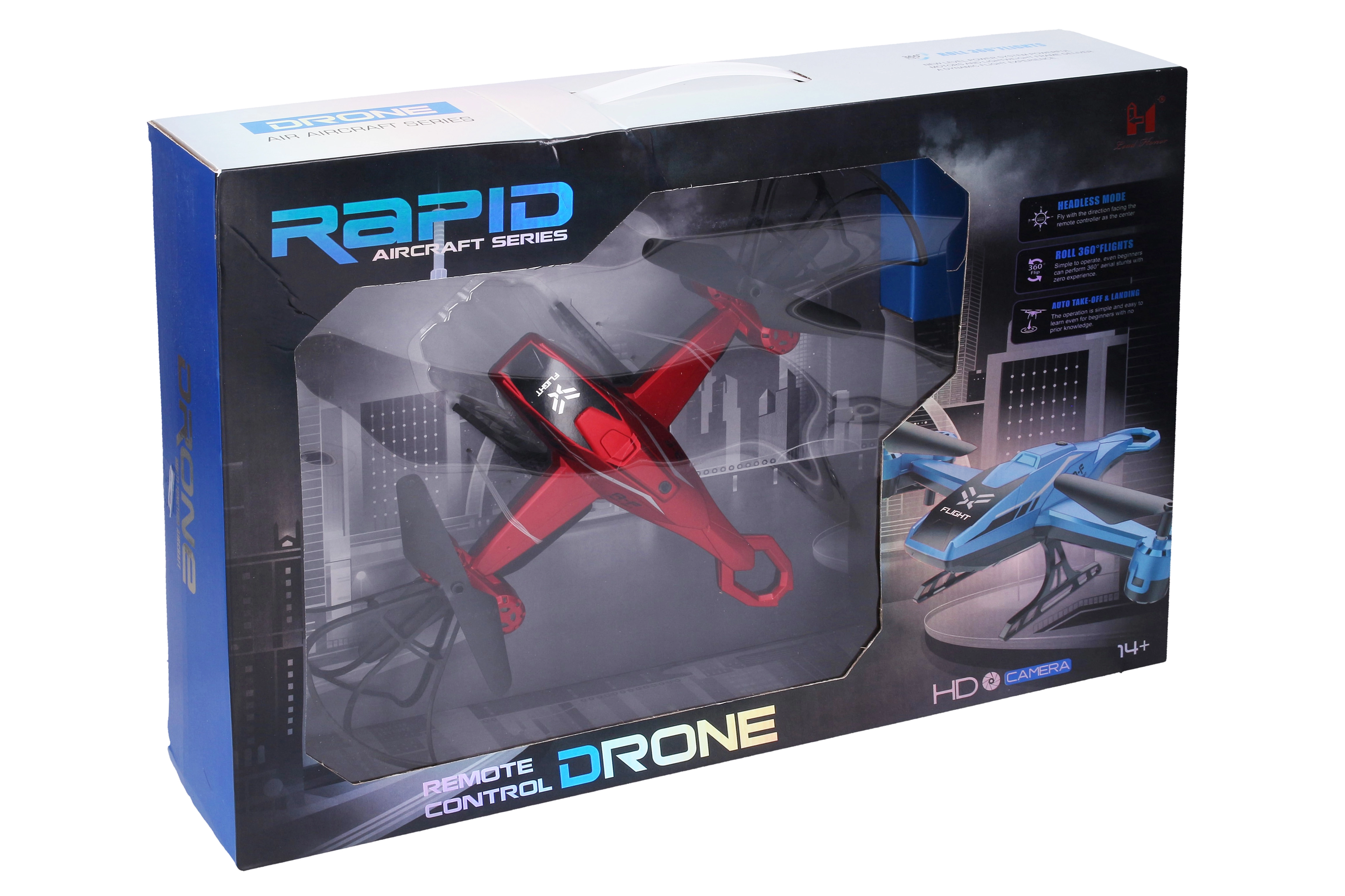 Lahek in stabilen dron Rapid z Wi‑Fi kamero 720p ponuja prenos videa na mobilnik, upravljanje z daljincem ali aplikacijo ter pametne funkcije, kot so samodejni vzlet/pristanek, 360° obrat, način brez glave (headless mode) in vrnitev na izhodiščno točko. Odličen za začetnike in rekreativne pilote.