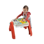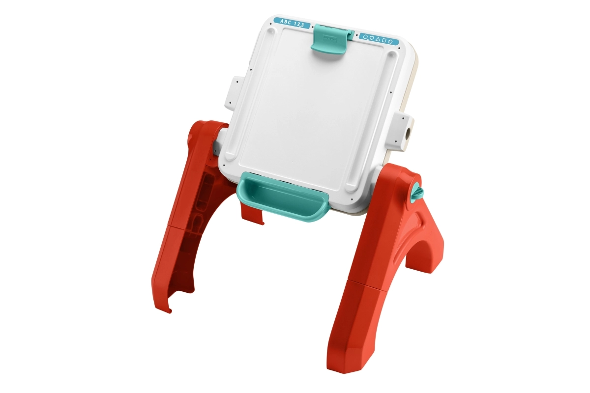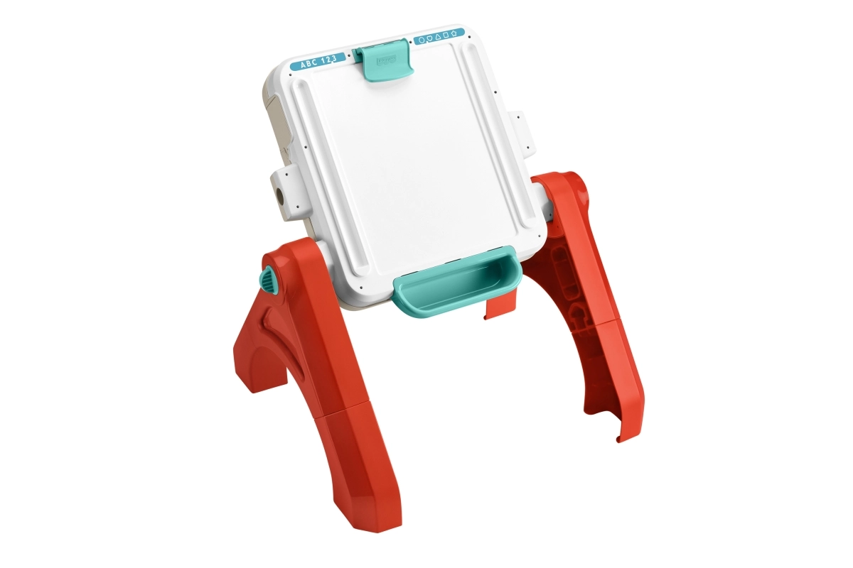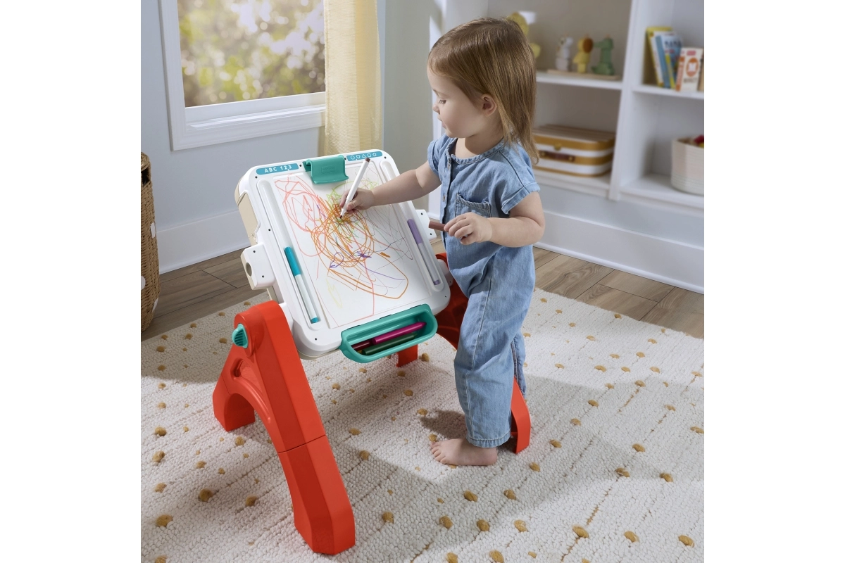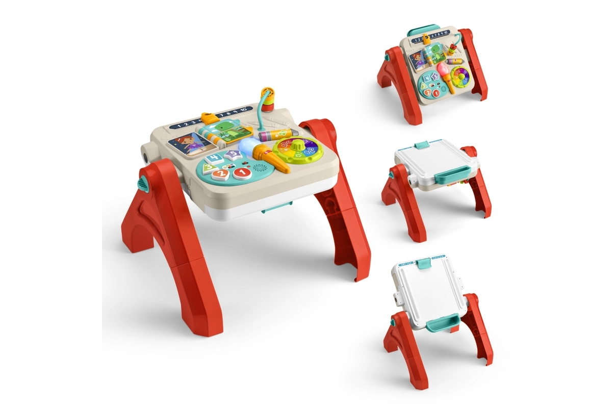 Odkrijte vsestransko igralno mizico 4 v 1, ki raste z otrokom od sedenja do samostojnega stanja in ustvarjanja. Interaktivna plošča uči števila, barve in oblike, ponuja več kot 125 zvokov, fraz in pesmi ter sistem Smart Stages za prilagoditev starosti. Zahvaljujoč zložljivim nogam in pokončni risalni tabli s sponko za papir in predalom za pripomočke podpira glasbene, senzorične in likovne veščine otrok od 6 mesecev dalje.