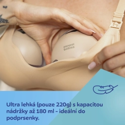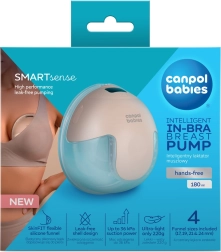 CANPOL BABIES SmartSense je sodobna “uhelj” črpalka nove generacije, ki se nosi neposredno v nedrčku. Zahvaljujoč prožnemu silikonskemu lijaku s tehnologijo SkinFIT zagotavlja naraven stik koža na kožo, visok nivo udobja in zmanjšuje stransko uhajanje mleka. Rezultat je učinkovito, diskretno in udobno črpanje kadarkoli ga potrebujete.