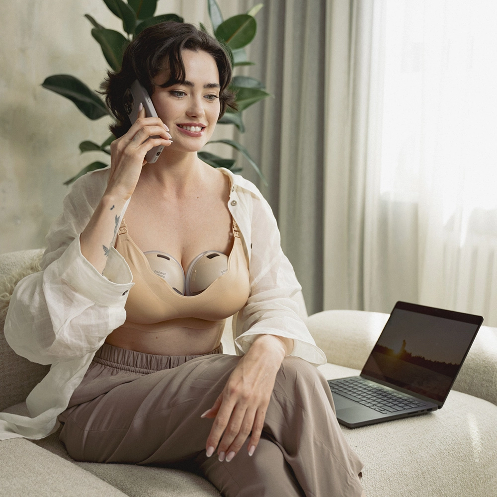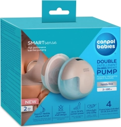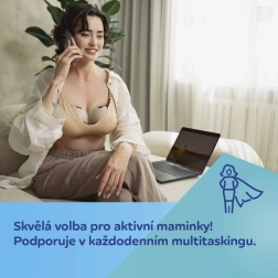 SmartSense je sodobna nosljiva “ušesna” prsna črpalka, zasnovana za aktivne mamice. Združuje udobje črpanja brez rok z visoko učinkovitostjo zahvaljujoč tehnologiji SkinFIT, ki zagotavlja tesno in nežno prileganje silikonskega lijaka dojki za naraven stik in minimalno uhajanje. Pregleden zaslon, preprosto upravljanje in hitro čiščenje jo naredijo za zanesljivega pomočnika doma, v službi in na potovanjih.