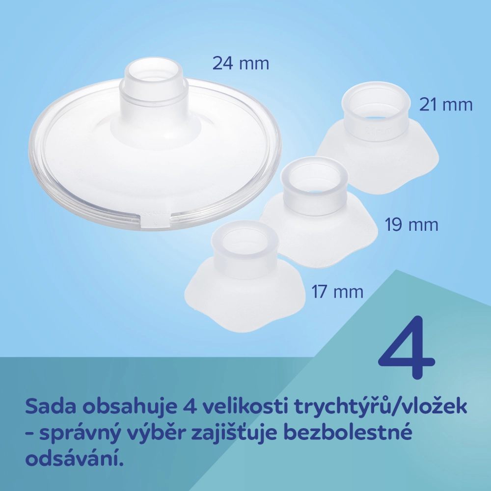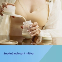 Elastičen silikonski lijak se nežno prilega dojki, podpira naravni stik koža na kožo in zmanjšuje stransko uhajanje mleka za večjo učinkovitost črpanja.