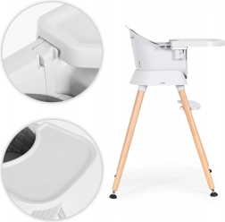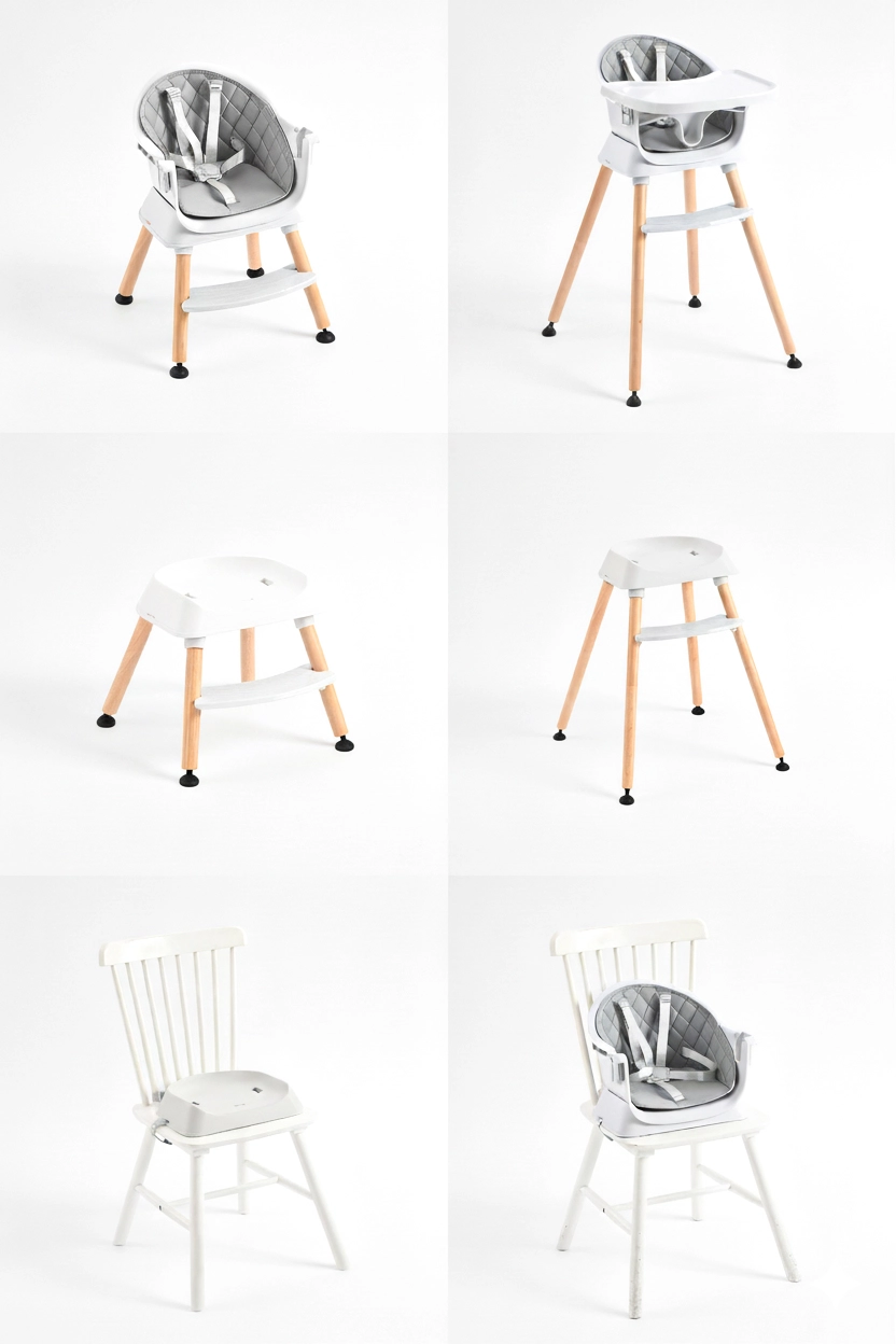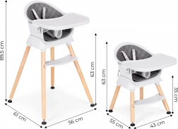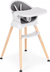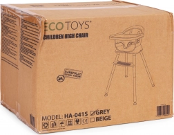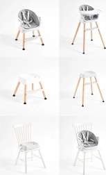 Stilski in praktičen stolček ECOTOYS 6v1 se popolnoma prilagodi vsakodnevnim ritualom – od prvih kašic do samostojnega sedenja za mizo in igre. Zahvaljujoč premišljeni zasnovi ga hitro spremenite v visok jedilni stolček, nižji počivalnik, sedež/booster na klasičen stol, samostojen sedež brez nog, barski stolček ali nizko pručko. Skrbno oblikovan sedež z mehko blazinico in opiralom za noge podpira ergonomsko sedenje.