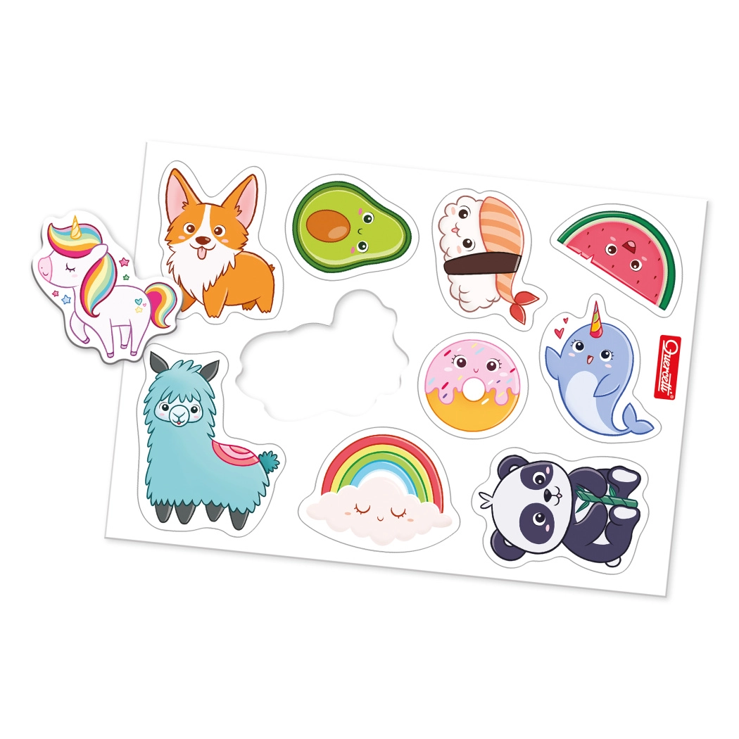 Barvite magnetne črke in slike motivirajo otroke k sestavljanju prvih besed ter prepoznavanju oblik črk, kar spodbuja zgodnjo pismenost.