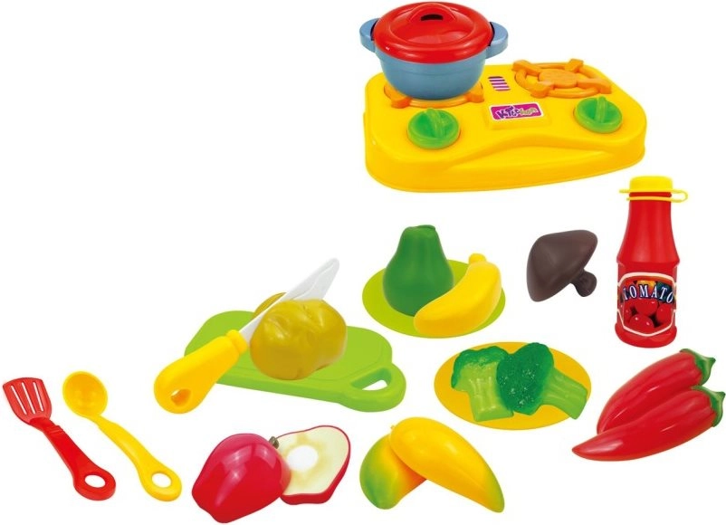 Lahka košarica omogoča enostavno shranjevanje in prenašanje celotnega kompleta. Realistične barve in oblike živil spodbujajo domišljijo ter pomagajo učiti o zdravem prehranjevanju na zabaven način.