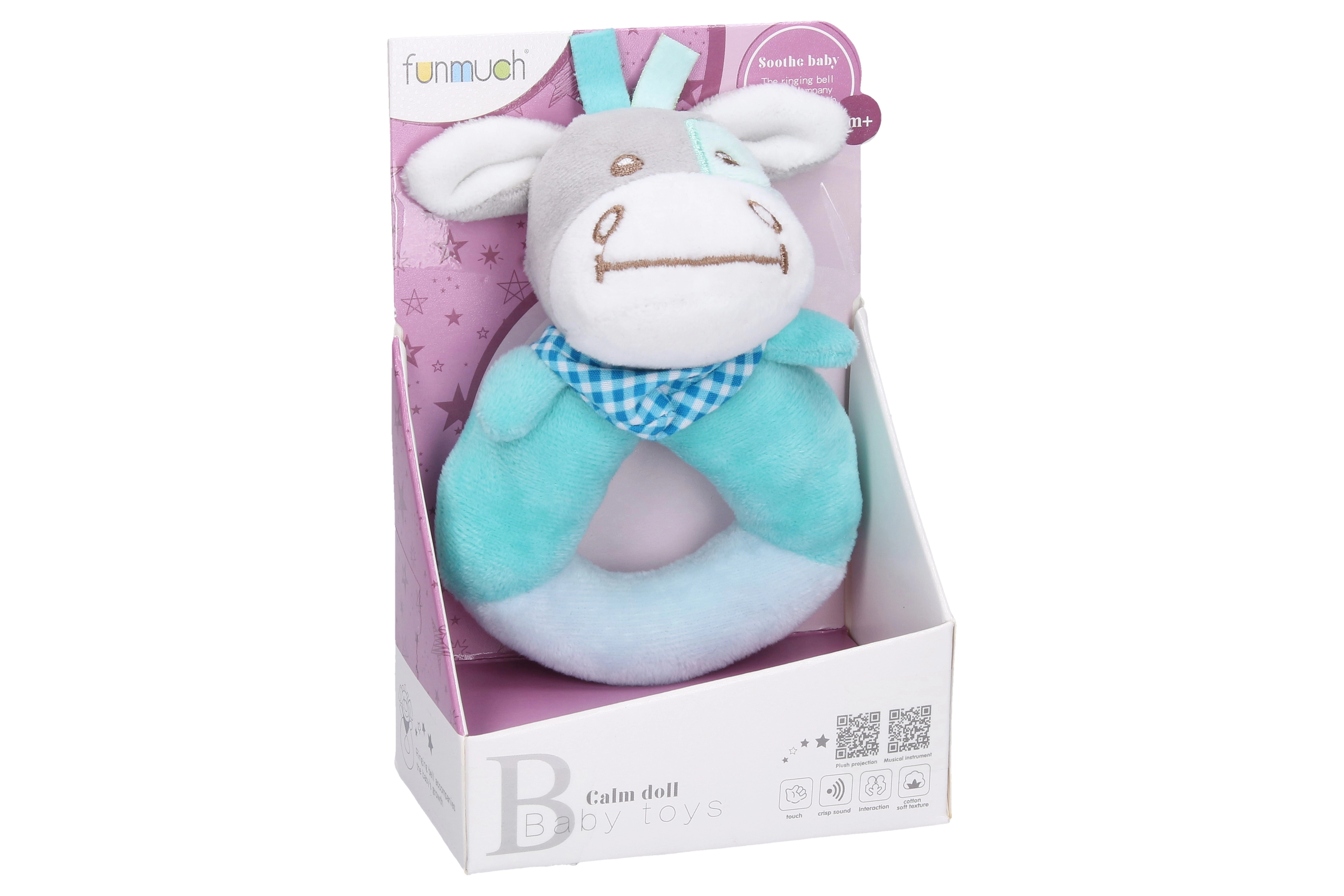 Ta mehka ropotuljica za najmlajše združuje prikupen dizajn oslička s funkcionalnim obročem za enostavno držanje. Zahvaljujoč prijetnemu plišu in nežnemu rožljanju pomaga razvijati sluh, dotik in motoriko otroka. Lahka zasnova je primerna za prve poskuse prijemanja in tresenja.
