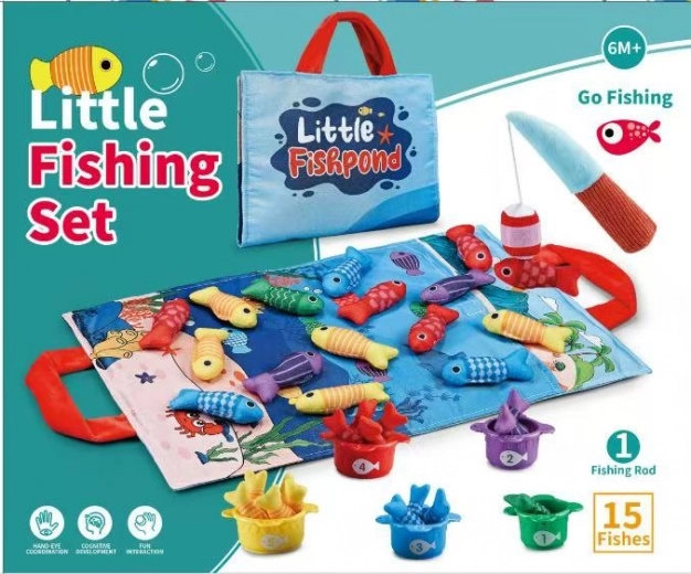 Ta mehka senzorična garnitura je idealna za prvo raziskovanje sveta iger in spretnosti. Zaradi živih barv in varnih materialov pritegne pozornost, podpira prijem, natančnost in razvrščanje po barvah. Otrok lovi ribice s palico z ježkom in jih vstavi v lončke iste barve; število ribic v lončku ustreza številki na lončku, kar naravno razvija štetje.
