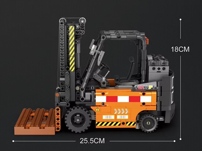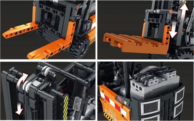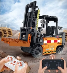 Komplet RC viličarja je odlična izbira za male in velike ljubitelje tehnike in mehanike. Iz 722 natančnih kosov sestavite stabilen model z realističnimi funkcijami, ki posnemajo delo pravega stroja. Zahvaljujoč daljinskemu upravljanju 2,4G ali mobilni aplikaciji boste uživali v gladki vožnji, dvigovanju tovora in natančnem manevriranju.