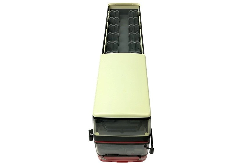 V paketu sta polnilni akumulator 4,8 V in USB polnilec, zato je avtobus hitro pripravljen na vožnjo. Priložene ograje omogočajo preprosto preoblikovanje zgornjega nadstropja v odprt cabrio panoramski avtobus. Mehke gumijaste pnevmatike nudijo dober oprijem in tiho vožnjo po različnih površinah.
