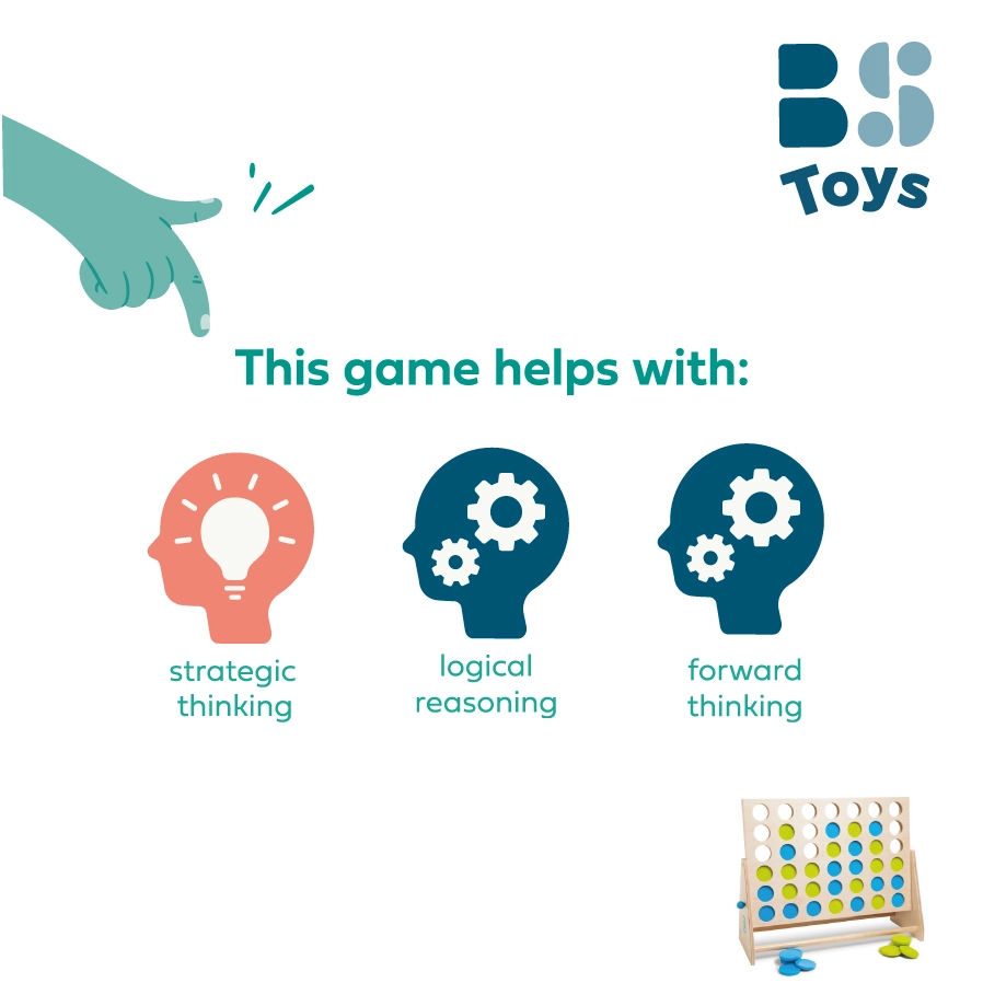 Igralci izmenično spuščajo modre in zelene žetone v mrežo ter poskušajo ustvariti povezavo štirih svoje barve. Hkrati blokirajo nasprotnika in načrtujejo več potez vnaprej – idealen trening logičnega razmišljanja in taktike.