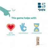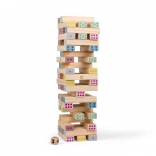 Velikanska številčna stolpnica spremeni klasično ravnotežno igro v pametno zabavo, ki razvija logično razmišljanje in delo s števili. Lesene bloke izvlečete glede na številko na kocki – bodisi en ustrezajoč kos bodisi dva bloka z ustrezno vsoto. To prinaša dinamično igranje, napetost in naravno vadbo računanja.