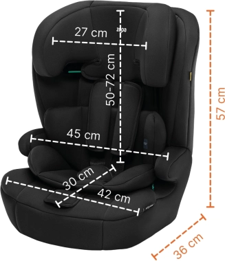 Z nastavljivim vzglavnikom sedež raste skupaj z otrokom in v vsaki fazi ohranja pravilno vodenje pasu. Globoki bočni paneli zagotavljajo bočno zaščito, mehko oblazinjenje pa udobje tudi na daljših poteh. Snemljiva in pralna prevleka olajša vzdrževanje in ohranja svežino sedeža.