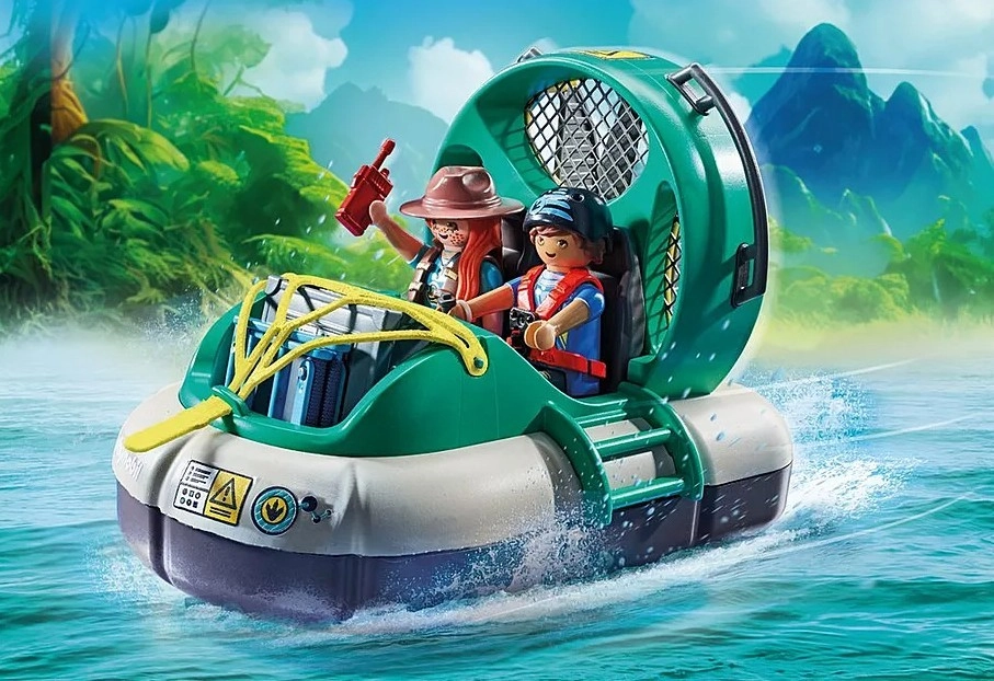 Zračni čoln sprejme dve figuri PLAYMOBIL in omogoča realistične vodne raziskave ter hiter premik za dinozavri.