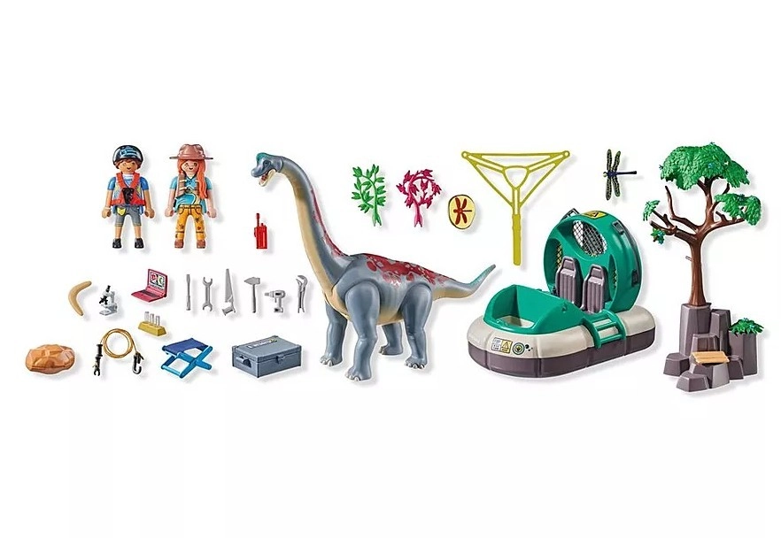 Brahiozaver ima gibljivo čeljust in realistične podrobnosti, drevo pa ponuja snemljive liste za interaktivno hranjenje. V kompletu najdete tudi »skrite zaklade«, na primer v jantaru ujeto kačjo pastirico, orodja, vrvi, mreže in raziskovalno opremo, vključno s prenosnikom za dokumentiranje vedenja.