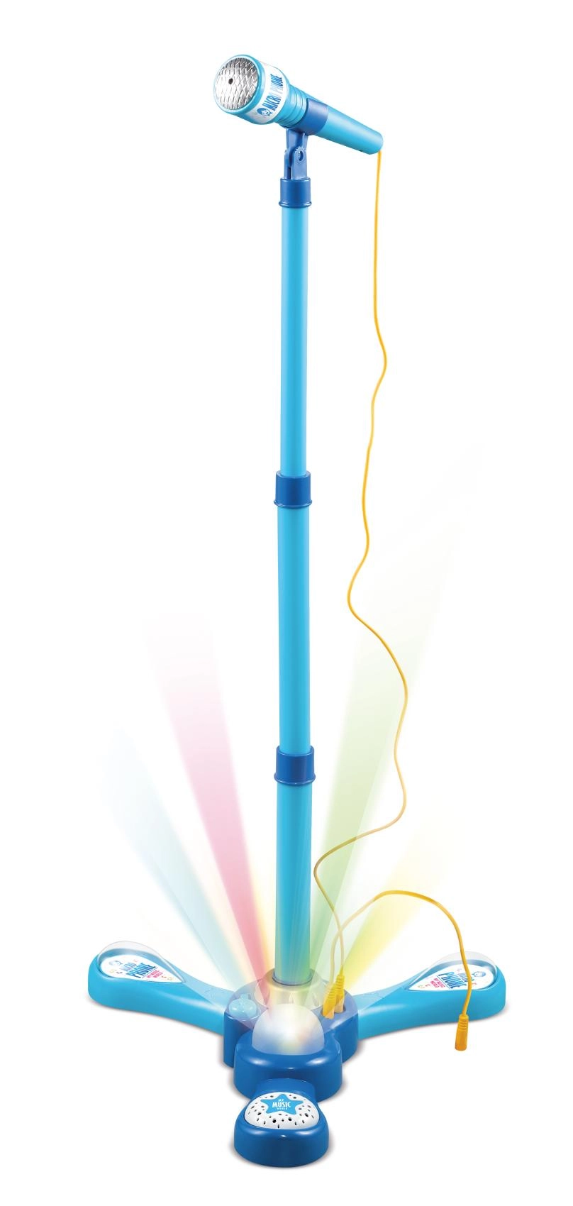 Ta otroški karaoke komplet ponuja vse, kar mali pevci potrebujejo: stabilno stojalo s tripodom, odstranljiv mikrofon in pisane svetlobne učinke, ki pričarajo vzdušje pravega odra. Z 12 vgrajenimi melodijami lahko otroci takoj začnejo peti ali pa si s priloženim kablom predvajajo svoje najljubše skladbe s telefona ali MP3.