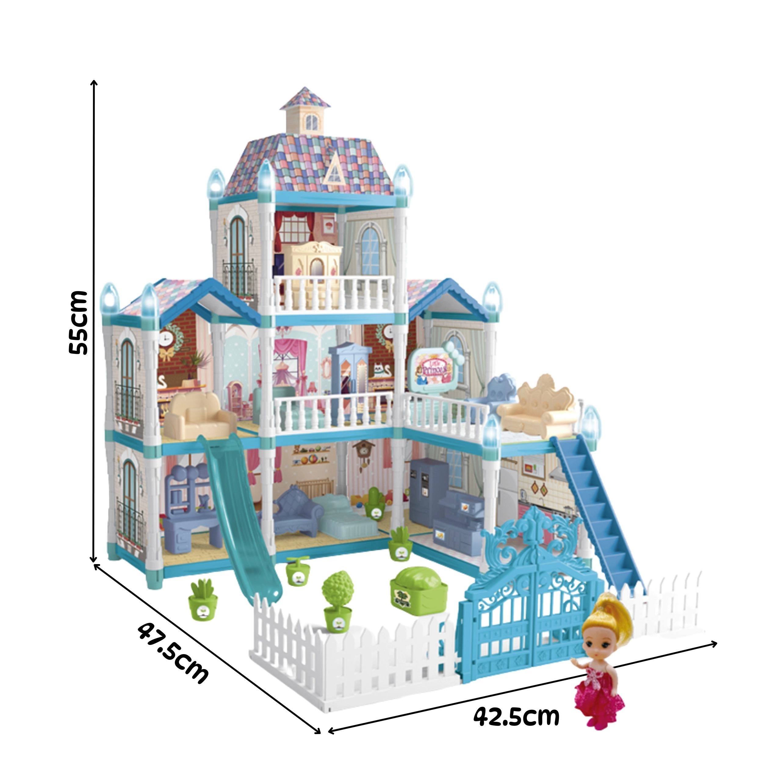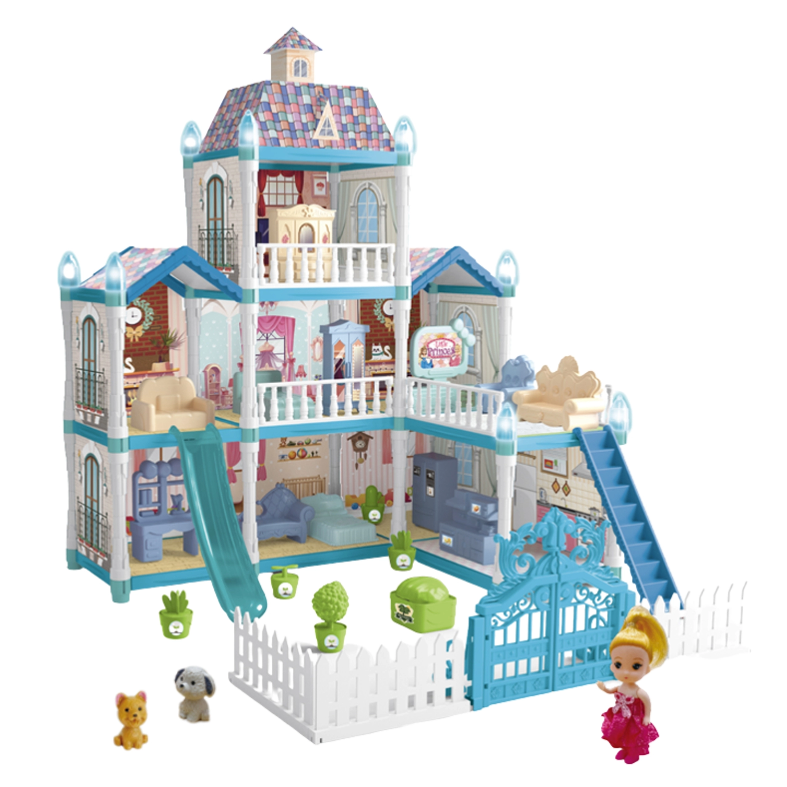 Odkrijte čaroben svet igre z veliko, trislojno hišico za punčke znamke Woopie. Set ponuja 191 delov, vključno s punčko, dvema živalcama (kužek in mucka), bogato opremo ter svetlobnimi dekoracijami. Nežna modro‑rožnata barvna paleta, navdihnjena z zimskim vrtom, spodbuja domišljijo in igro vlog. Enostavna montaža in odličen namig za darilo za otroke od 3 let.