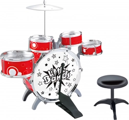 Komplet vsebuje skupaj 7 elementov in je idealen za igranje doma in prve »koncerte«. Starši bodo cenili hitro sestavljanje in trpežne materiale, otrokom pa je všeč privlačen videz s centralnim bobnom in činelo.