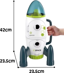 Raketa je izdelana iz vzdržljive in varne plastike ABS ter ima praktičen ročaj za enostavno prenašanje. Odpirajoči se kokpit in vrata omogočajo dostop do nadzorne sobe in spodnjega hangarja, zato si lahko otroci ustvarjajo lastne scenarije ter razvijajo ustvarjalnost, koordinacijo oko–roka in motoriko. Igrača je primerna za otroško sobo, vrtec in na pot.
