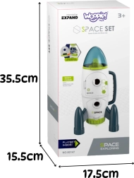 Interaktivna raketa Woopie je premišljeno zasnovan set za male raziskovalce, ki prinaša avtentično izkušnjo vesoljskih misij. Otroci lahko posadijo figurico astronavta v 360° vrtljiv stol, jo premikajo med zgornjo kapsulo in spodnjim oddelkom ter se odpravijo na raziskovanje z vesoljskim roverjem. Igro dodatno popestrita učinek odštevanja do vzleta in svetleča podlaga, ki ustvarjata realistično atmosfero vzleta rakete.