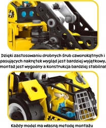 Zahvaljujoč premičnim delom je igra verodostojna in tekoča. Set vključuje tudi figurice in orodja, tako da lahko otroci takoj začnejo z “gradnjo”. Preprosta navodila korak za korakom olajšajo sestavljanje ter razvijajo koordinacijo roka–oko, logično mišljenje in fino motoriko.