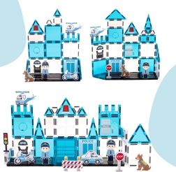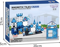 Zgradite svojo lastno policijsko postajo s kreativno magnetno sestavljanko WOOPIE. Zahvaljujoč močnim magnetom deli trdno držijo in omogočajo stabilne konstrukcije. Bogat komplet z figuricami policistov, radijskim vozilom, helikopterjem, motociklom, policijskim psom in prometnimi znaki prinaša ure zabave ter razvija kreativnost, logično razmišljanje in fino motoriko otrok od 3. leta dalje.