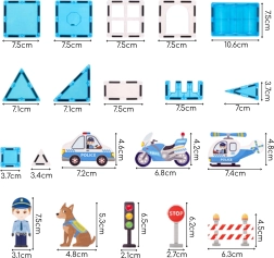 - Magnetni paneli različnih oblik, figurice policistov, policijski pes, radijsko vozilo, helikopter, motocikel, prometni znaki, pregrade, nalepke