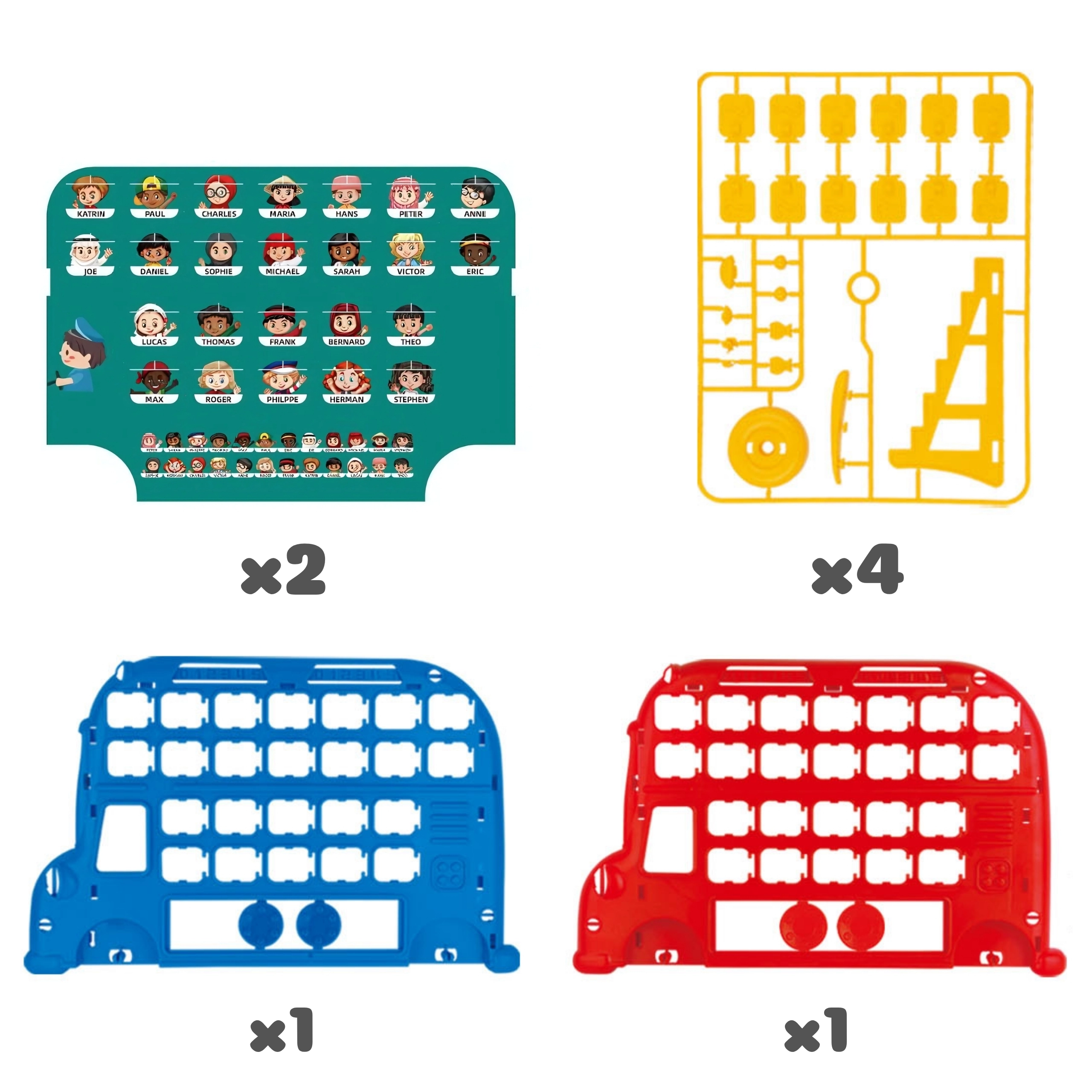 Kaj je v paketu:- 2 igralni tabli v obliki avtobusa (modra in rdeča)