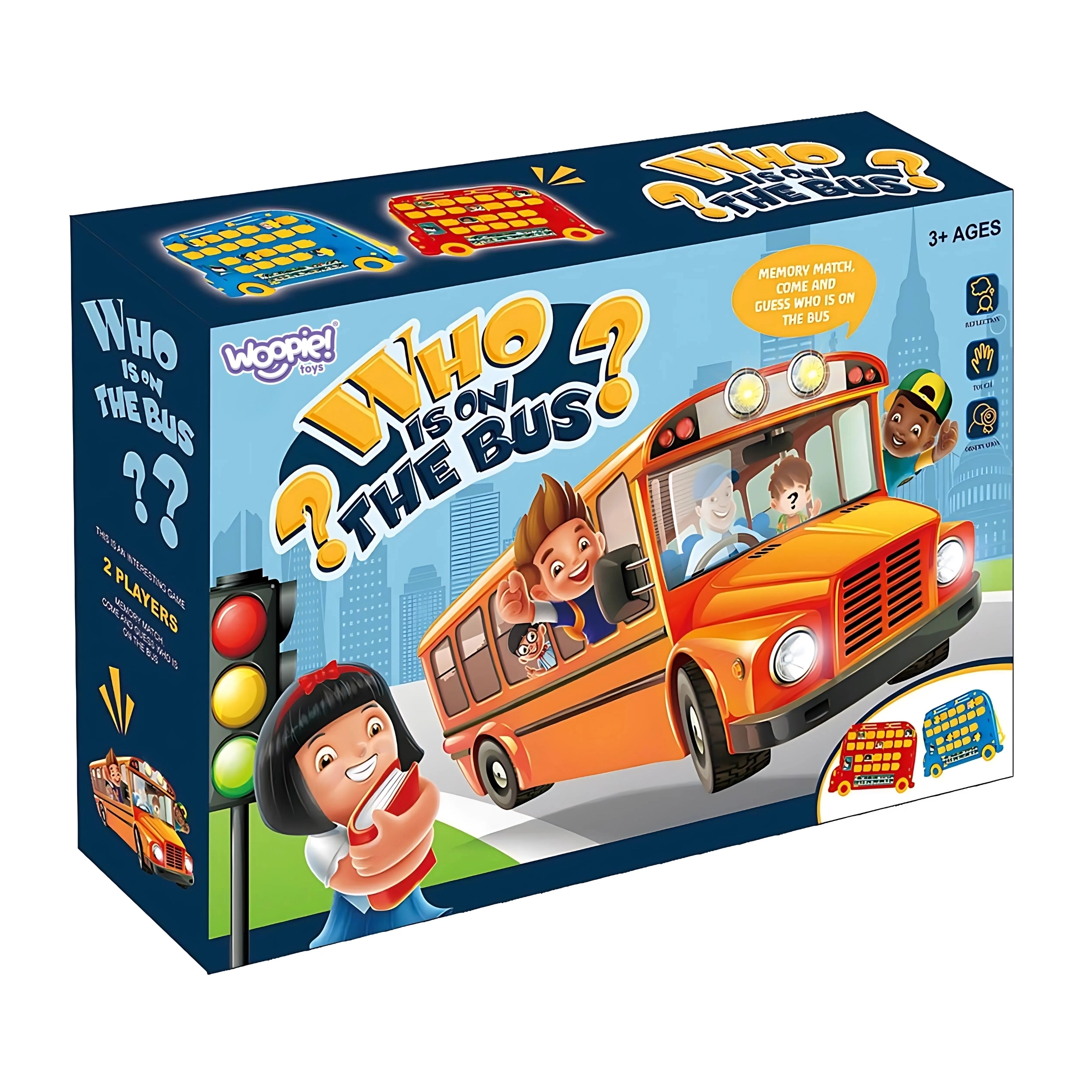 Družinska igra Woopie Ugani kdo prinaša priljubljeno načelo »ugani, kdo je« v novi, privlačni izvedbi z tablami v obliki šolskega avtobusa. Otroci in odrasli si urijo logično razmišljanje, spomin in pozornost ter komunikacijo. Igralci postavljajo pametna vprašanja in izločajo like ali živali, dokler ne odkrijejo pravilne kartice nasprotnika. Preprosta mehanika brez baterij, vzdržljiva izvedba in barvite ilustracije zagotavljajo zabavo za dolge ure doma in na poti.