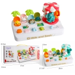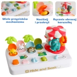 Odkrijte čar “pop-up” zabave, ki otroke navduši in hkrati pametno razvija njihove spretnosti. Vsaka od 4 prikupnih živalc (račkica, zajček, opička, dinozaver) se pojavi po pritisku, zasuku ali premiku ustreznega gumba z edinstveno obliko. Poleg tega navduši še vrtljiv vrtiljak s tremi živalcami za še več interaktivne zabave.