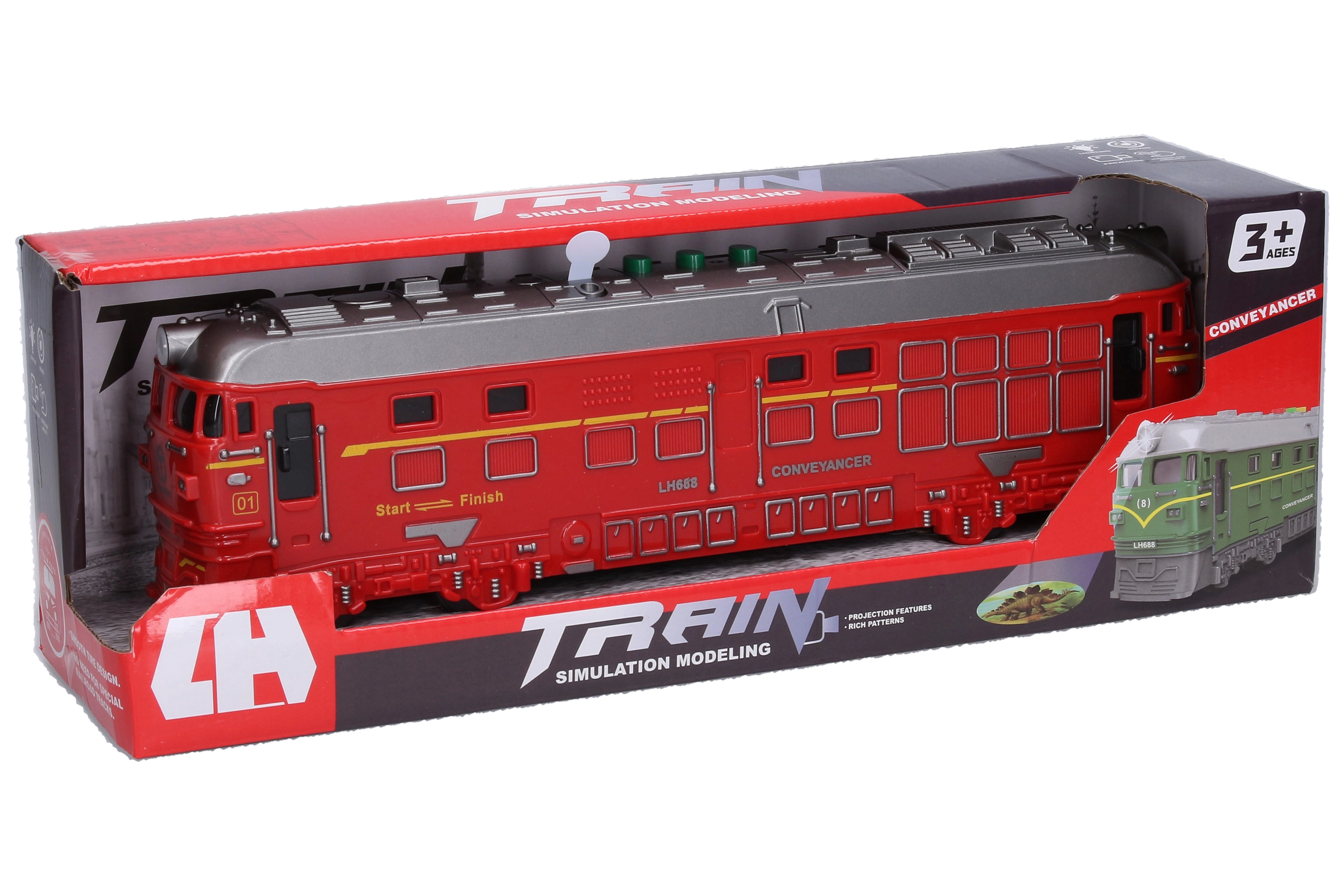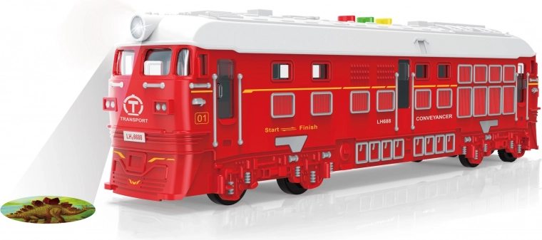Ta rdeč vztrajnostni vlak dolžine 33 cm otrokom prinaša realističen občutek vožnje. Zahvaljujoč svetlobnim in zvočnim učinkom ter vgrajeni projekciji je igra še bolj privlačna. Upravljanje je enostavno – dovolj je pritisniti gumbe na strehi in uživati v zvokih vlaka in železnice.