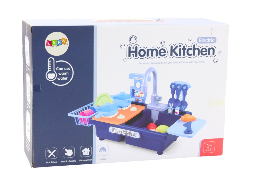 Odkrijte veselje igre »doma« z elektronskim pomivalnim koritom za otroke, ki voda v njem resnično teče. Po nalivanju vode v spodnji rezervoar začne cirkulacijski sistem napajati pipo in voda teče kot v pravi kuhinji. Otroci lahko varno preizkusijo pomivanje in izpiranje posode ter sadja, obenem pa urijo praktične spretnosti.