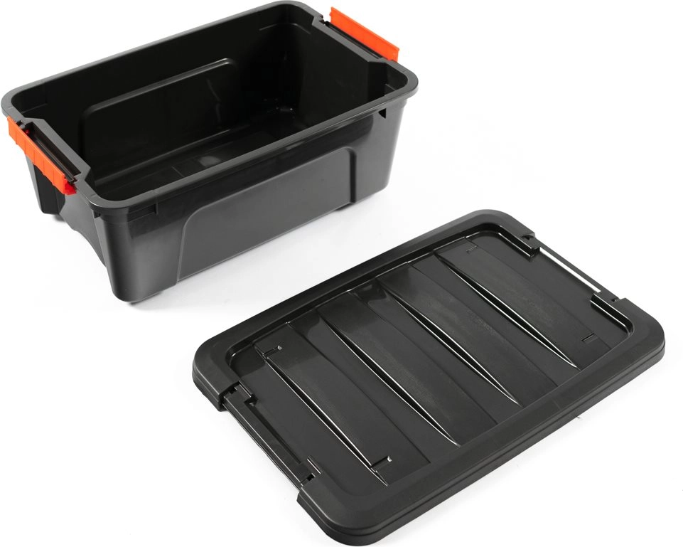 Ohranite red doma in v delavnici s kompaktno shranjevalno škatlo DOLONI. Zahvaljujoč prostornini 12 litrov in univerzalnim meram 42 × 28 × 15 cm boste zlahka shranili igrače, kocke, sezonske dodatke ali orodje. Zapiralni pokrov ščiti vsebino pred prahom in olajša zlaganje.