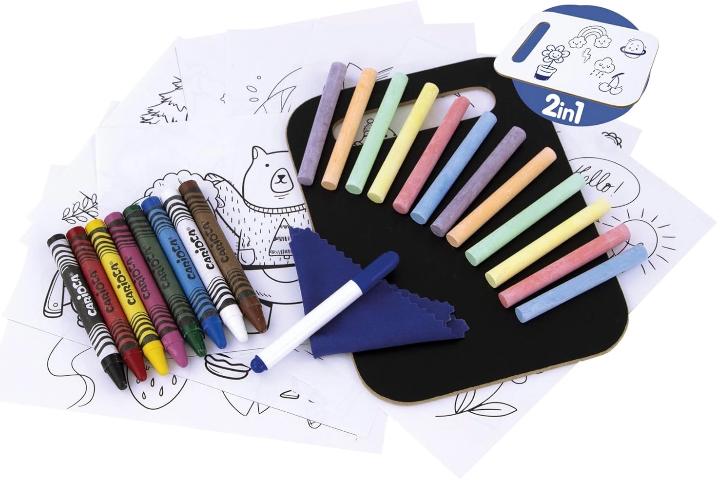 Praktični umetniški kovček CHICOS PLAY & GO bo razveselil vsakega malega ustvarjalca. Zaradi bogate opreme lahko otroci kjerkoli zlahka začnejo slikati, risati in barvati. Lahka plastična zasnova in pregledna razporeditev pripomočkov omogočata udobno uporabo in enostavno shranjevanje.