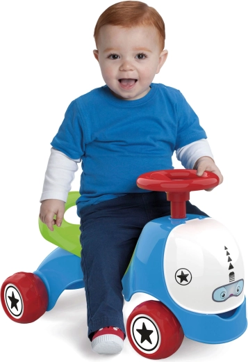 Poganjalec je izdelan iz visokokakovostne in odporne plastike, ki jo preprosto obrišete. Ergonomično oblikovan sedež in volan, ki se prosto vrti, zagotavljata udobno in zabavno vožnjo. Odlično za otroke od 10 mesecev do 3 let.
