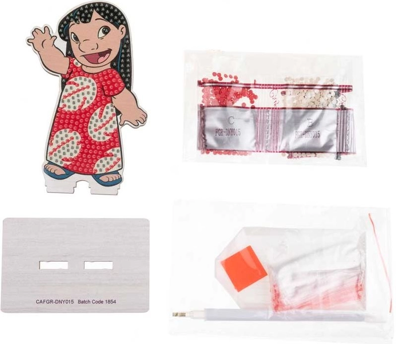 Diamantno slikanje je priljubljen način, kako se sprostiti in hkrati ustvariti čudovito dekoracijo z motivom DISNEY: Lilo. Posamezni kamenčki v obliki “diamantov” se enostavno nanašajo s priloženim peresom, zato je ustvarjanje primerno za začetnike in napredne. Končni bleščeči učinek doda sliki izraznost in globino.