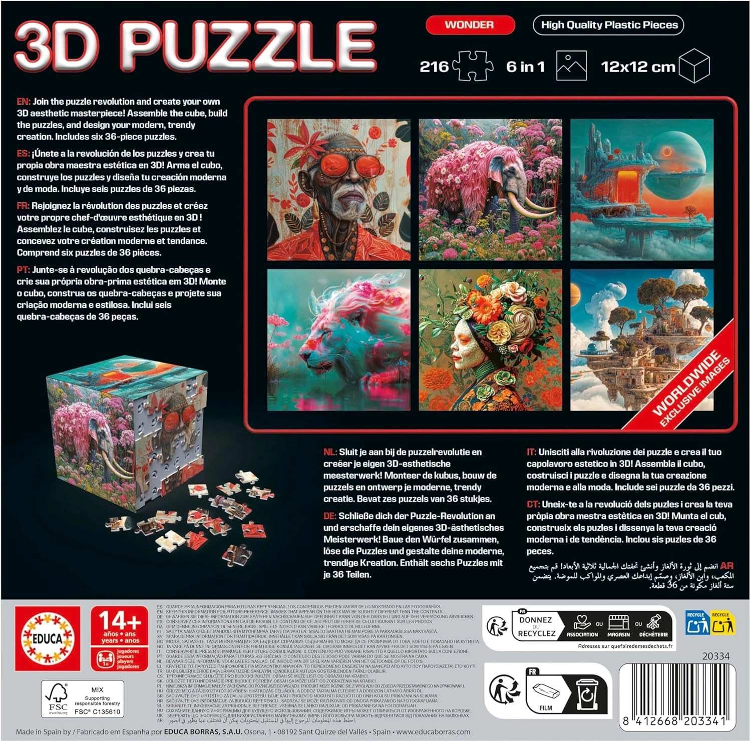 Odkrijte kreativno sestavljanje s 3D kocko WONDER od EDUCA. Zaradi premišljene razdelitve na 6 delov po 36 kosov je sestavljanje pregledno in zabavno, ter pritegne začetnike in napredne ljubitelje sestavljank.