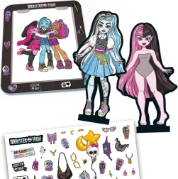 Ta ustvarjalni komplet znamke Educa omogoča otrokom oblikovati in prerisovati izvirna oblačila za priljubljene like MONSTER HIGH. Zahvaljujoč svetleči podlagi je prerisovanje preprosto in natančno, zato bodo otroci uživali v ustvarjanju stilskih oprav, njihovem barvanju in okraševanju s pomočjo nalepk. Po dokončanju modelov lahko škatlo spremenite v modno pisto in pripravite lastno modno revijo.