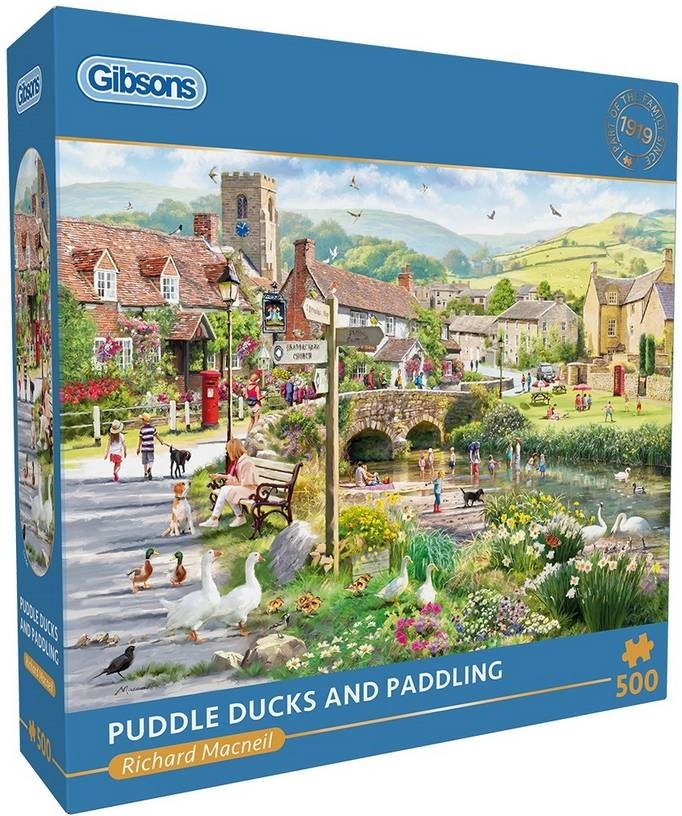 Uživajte v mirnih trenutkih s podobo iz britanske zbirke GIBSONS. Motiv »Ljudje ob potoku« prinaša slikovito podeželsko vzdušje in je idealen za sproščeno popoldne z družino ali počitek po napornem dnevu. Zaradi kakovostne izdelave in živih barv se kosi natančno prilegajo, sestavljanje pa je pravo veselje.