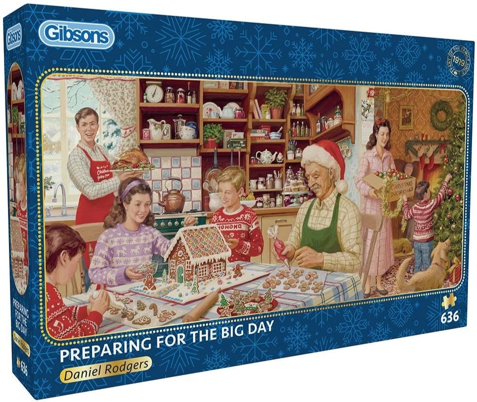 Odkrijte kakovostne panoramske sestavljanke GIBSONS z motivom Priprava na veliki dan. Zahvaljujoč natančnemu izseku in trdnemu kartonu se kosi odlično prilegajo, kar zagotavlja tekoče in prijetno sestavljanje. Panoramski format lepo izstopa na polici ali na steni.