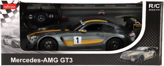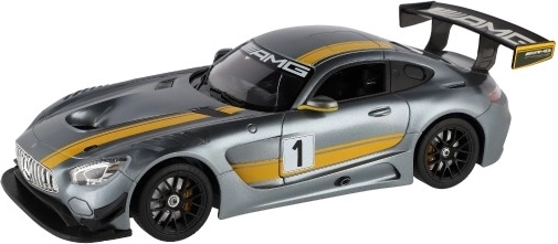 Odkrijte natančno izdelan RC model MERCEDES-AMG GT3 v sivi barvi z rumenimi črtami in izrazitim zadnjim krilom. Podrobna karoserija izstopa s športnimi linijami in avtentičnimi elementi dirkalnega vozila, ki bodo razveselili vsakega ljubitelja hitrih avtomobilov.
