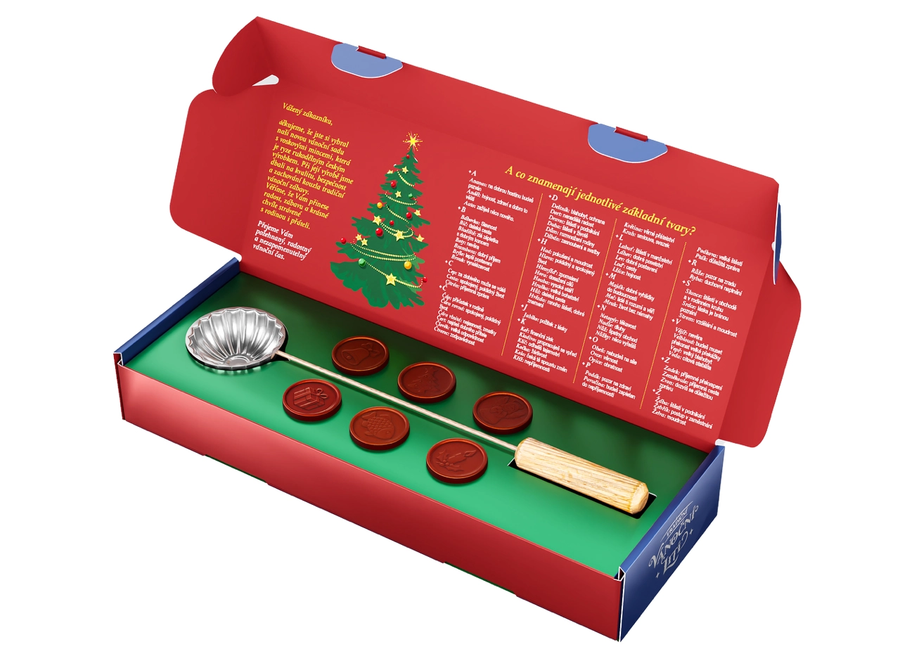 Vse potrebno imate takoj pri roki – voščeni kovanci se hitro topijo, posebna zajemalka pa olajša varno vlivanje v hladno vodo. Nastale oblike lahko skupaj razlagate in si tako privoščite izviren praznični program.