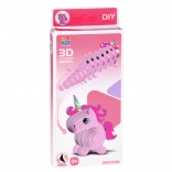 Rožnati samorog kot 3D kartonski model je odlična izbira za male ustvarjalce. Dele je treba le iztisniti iz pol in slediti navodilom na embalaži. Končna figurica razveseli kot igrača in kot prisrčna dekoracija otroške sobe.