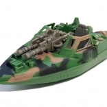 Vzdržljiv plastičen čoln v kamuflaži z dvojim sprednjim topom in podrobnim kokpitom razširi akcijske scenarije na vodne operacije.