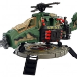 - Helikopter SWAT z zvoki, vojaški motorni čoln, 3 figurice vojakov, pristajalna ploščad, šotor/ukazni center, komplet orožja, velika mreža