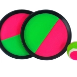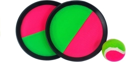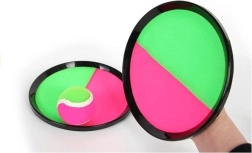 Velcro površina v neon zelenih in rožnatih odtenkih trdno drži žogico, zato je igra primerna tudi za mlajše otroke in začetnike.