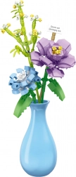 Ta dekorativni komplet združuje kreativno zabavo z dolgotrajnim učinkom – šopek iz kock nikoli ne oveni in bo krasil notranjost vse leto. Pastelni cvetovi v odtenkih vijolične, modre in zelene dopolnjujejo stilsko modro vazo, ki poudari videz vsake sobe.