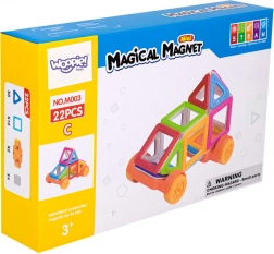 Magnetna sestavljanka WOOPIE otrokom na igriv način približa osnove geometrije in magnetizma. Prozorni, živobarvni kosi se gladko povezujejo in omogočajo ustvarjanje tridimenzionalnih hišk, stolpov in vozil na kolesih. Zahvaljujoč trdni magnetni vezi so konstrukcije stabilne, hkrati pa jih je mogoče hitro predelati in tako spodbujati domišljijo.