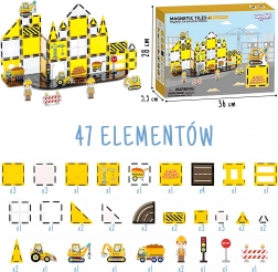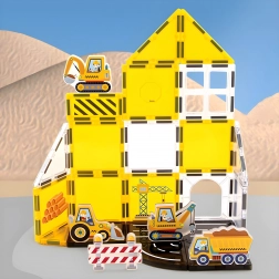 Gradbeni komplet Woopie s 47 deli prinaša otrokom od 3. leta naprej neskončne možnosti gradnje zgradb, cest in celotnih gradbiščnih prizorov. Zahvaljujoč neodimskim magnetom deli trdno držijo, zato je sestavljanje intuitivno in varno. Prosojne in barvne ploščice v rumeni in beli barvi se odlično ujemajo z vozili in figuricami delavcev, zato zgrajene stvaritve takoj oživijo v domišljijski igri.