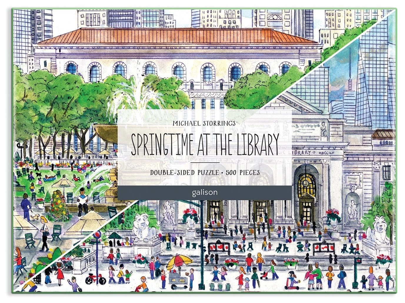 Dvosmerna sestavljanka GALISON »Springtime at the Library« prinaša edinstveno izkušnjo: na eni strani najdete živahen mestni prizor s fontano in parkom, na drugi ikonično knjižnico in živahno okolico. Zaradi dvojnega motiva dobite dvojno dozo sestavljanja in večjo ponovno igrabilnost.