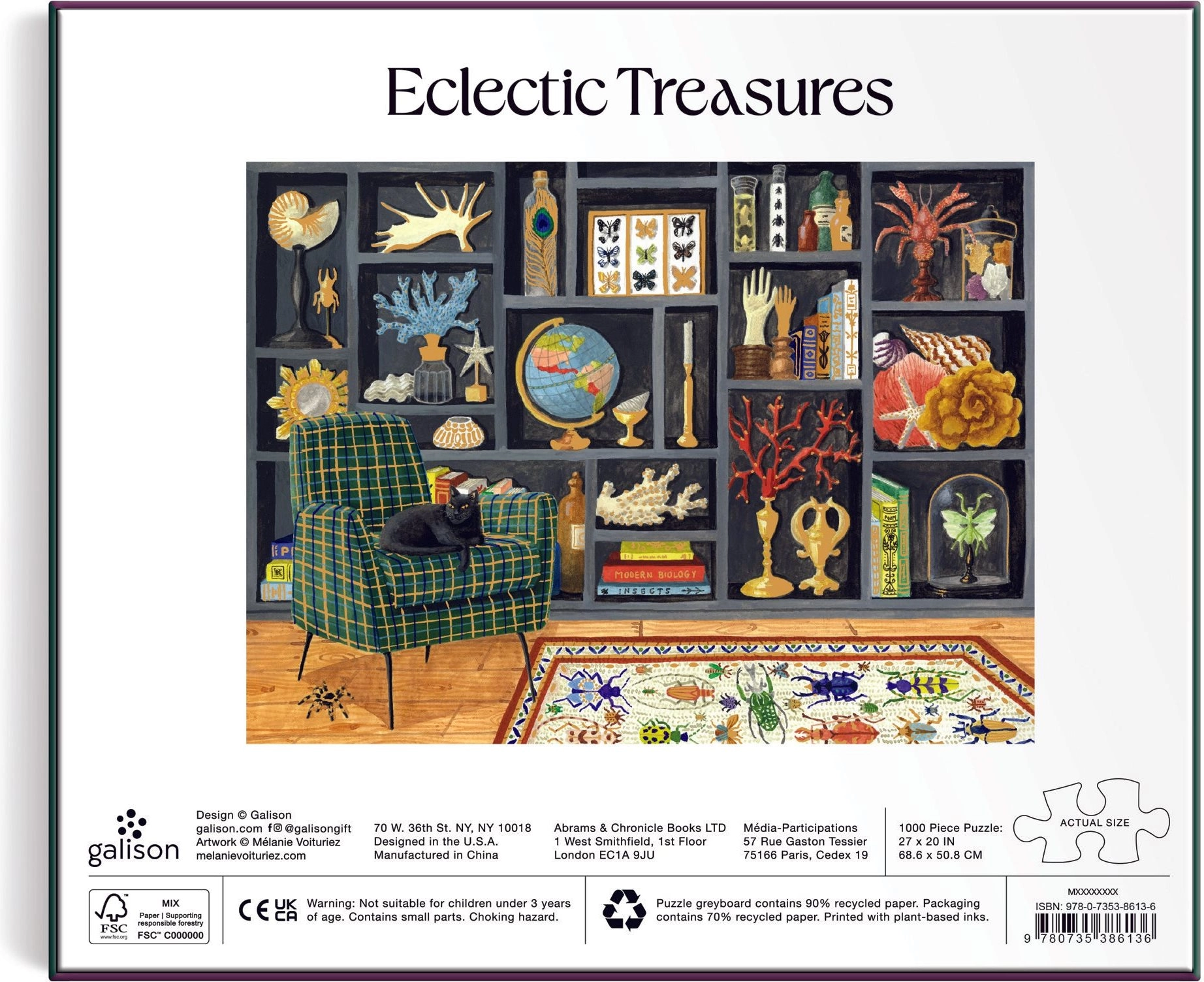 Odkrijte veselje sestavljanja z elegantnimi kovinskimi sestavljankami, ki se zaradi posebne površine čudovito bleščijo in spreminjajo odseve ob vsakem gibu. Sestavljanka s 1000 koščki ponuja razkošen kovinski učinek, kakovostno izdelavo in vpadljiv motiv Eklektični zakladi v velikosti približno 69 × 51 cm.